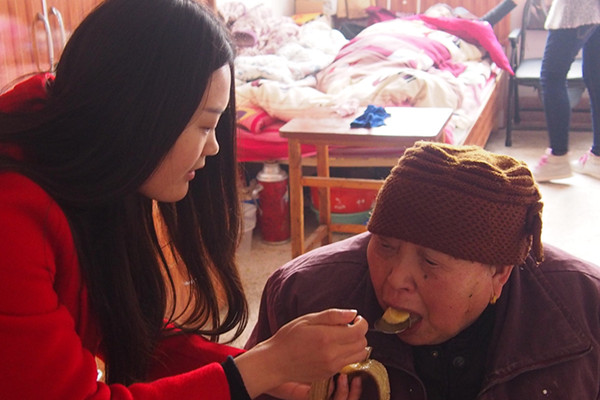 活动期间,“白衣天使”健康小分队主要负责健康体检。在工作人员的帮助下,志愿者们小心搀扶老人来到体检区,帮助他们脱去外衣,测量血压、细心体检,像家人一样体贴关心他们。“美食来啦”小分队带来了事前准备好的饺子馅和饺子皮,邀请老人一起包饺子,并向他们请教包饺子的方法,谈生活、唠家常。志愿者把煮熟的饺子送到爷爷奶奶的手里,有的一口一口地帮助行动不便的老人品尝美食。大厅里充满了欢声笑语,就像家人一起过年。“餐后甜点”小分队给爷爷奶奶们准备了可口的水果,并细心地将水果烫热,切成小块,送到每一位老人家的手里,暖暖的,都是感动。志愿者们还帮助老人们整理内务,给他们送去了无糖饼干等慰问品。看到他们脸上露出孩子般开心的笑容,志愿者们感觉很满足。