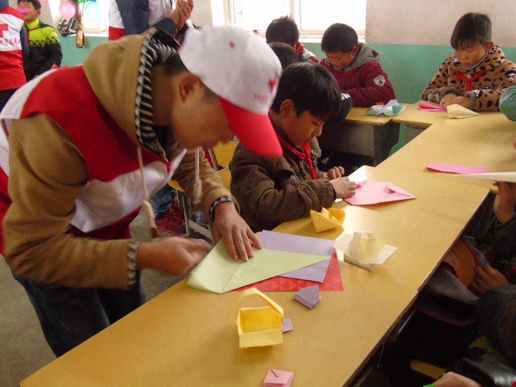 当天,小朋友们兴冲冲地涌进教室,帮助大哥哥大姐姐们一起布置教室,在欢笑声中,教室充满了家的味道。在一间教室,小朋友们将折的爱心、篮子、青蛙和纸飞机送给志愿者;另一间教室,志愿者们正在教大家用橡皮泥捏出各种物品,小朋友们用奇思妙想做出西瓜、梨、玉米、小狗和飞机等。大家在游戏中笑着闹着,沉浸在歌声和欢乐中。