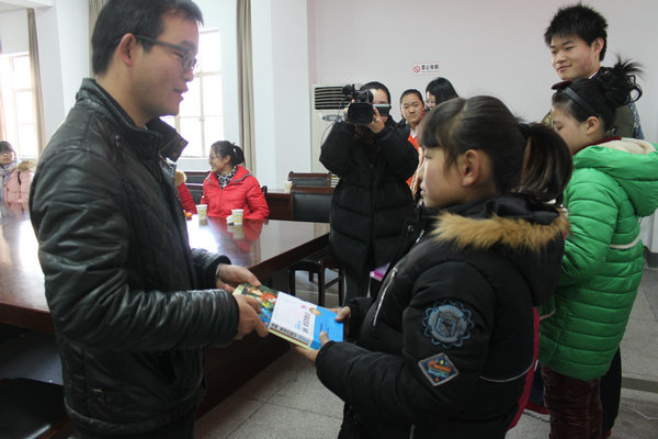 活动分为书籍赠送、参观校园、趣味游戏、观看励志短片四个环节。书籍赠送环节由李双双主持,他为小朋友们发放书籍,并送上了自己的祝福。校园参观地点包括经管学院、校图书馆等,通过参观活动,孩子们初步认识了大学生活,激励大家积极进取、努力拼搏。趣味游戏中,孩子们和志愿者们在 “三人两足”、“猜字谜”等游戏中相互合作,欢笑声久久回荡在操场上空。随着励志短片的观看,活动步入尾声,孩子们纷纷表示,感谢哥哥姐姐们一直以来对我们的帮助,我们会努力学习,不会辜负你们的一番苦心。