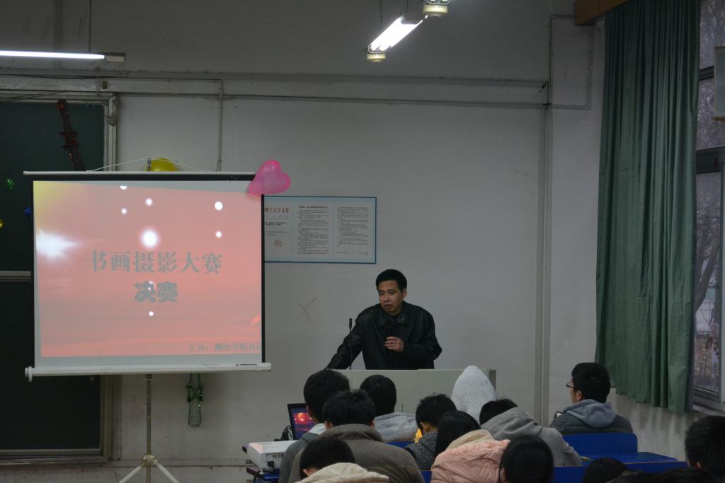 12月13日下午3点,测绘学院第一届“走下网络 走向艺术”书画摄影大赛决赛在北区2201举办。有书画专长的王列平老师、辅导员韦伟以及校摄影协会、院社联等相关学生负责人担任专业评委。
