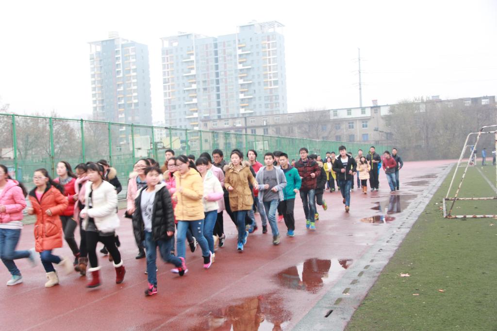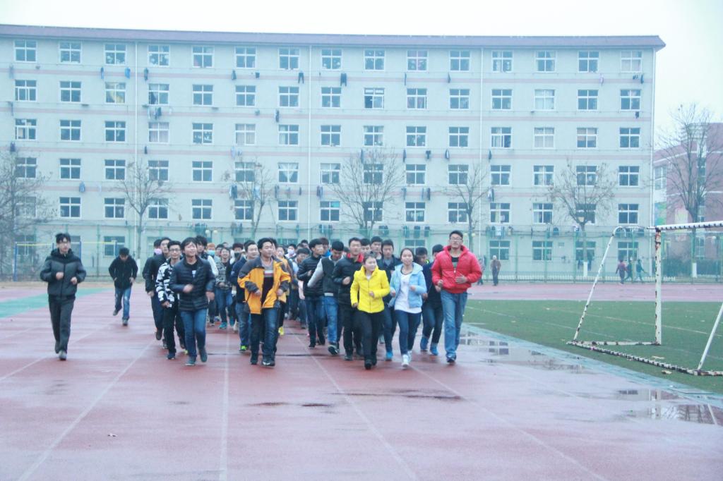 早上6:30,同学们准时在北校区运动场集合。大家精神抖擞、热情高涨,随着活动负责人的一声口令,同学们迅速迈开脚步,向前奔跑。整齐的队伍、一致的步调、洪亮的歌声成了运动场上一道亮丽的风景线。同学们健康活力的运动,朝气蓬勃的面孔,坚忍不拔的意志,展示了当代青年奋发向上的风采。