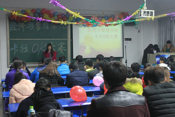 12月4日晚,经济与管理学院举办的“卡拉OK”歌唱比赛在经管楼201教室拉开帷幕。院团委副书记李双双、院学生会主席周星驰、校十佳歌手黄欣然等担任此次比赛评委。来自学院2015级各个专业共33名选手参加比赛。