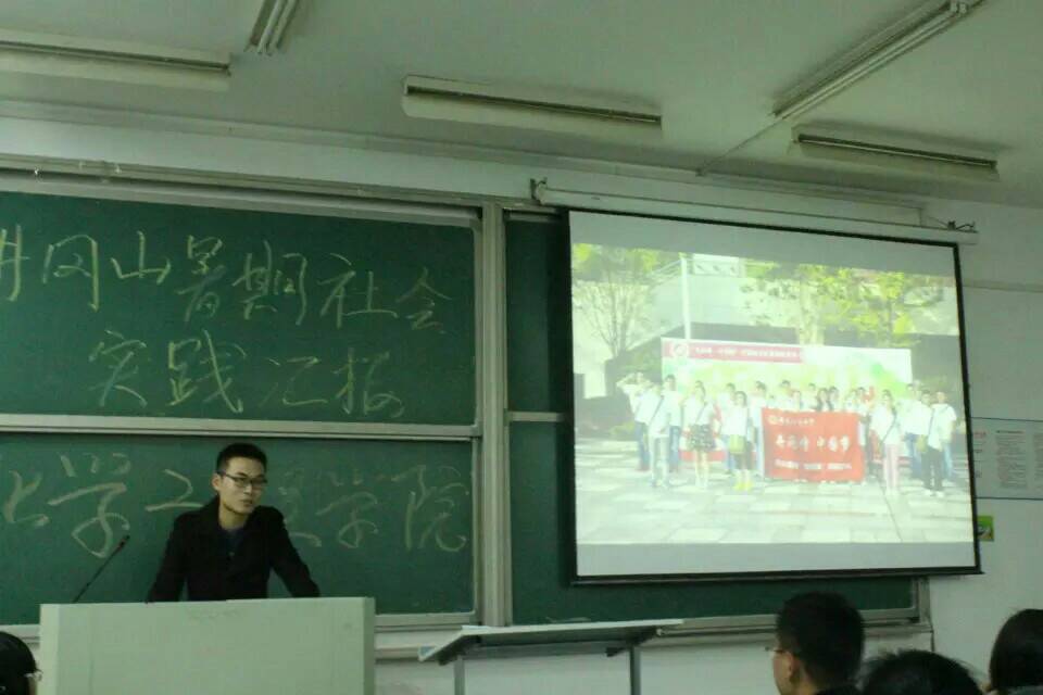 11月29日晚,化学工程学院赴井冈山暑期社会实践报告团在北实205教室举行专题报告会。实践团成员弹药13-4班李毅、蒋贺贺,化工14-1班邢雪雷3名同学向全院学子讲述井冈山故事,畅谈在井冈山实践期间的学习、培训、调研感受,总结暑期社会实践经验。学院团委副书记杨志华参加报告会。