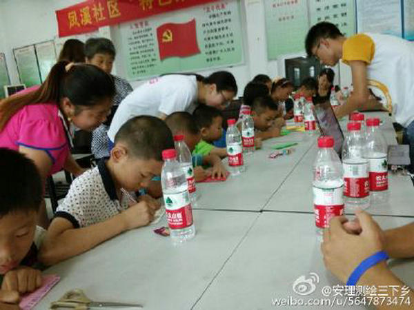 7月16日,志愿者在做了充分的准备后来到留守儿童身边为他们授课,与他们谈心互动,与他们一起为父母制作了贺卡,将孩子的爱更加形象地传达到父母身边。志愿者按照“彩虹桥”的理念,利用大学生的技术优势,定期制作视频帮助留守儿童与父母交流互动,把“彩虹桥”做深做细,覆盖到更多的留守儿童中去。
