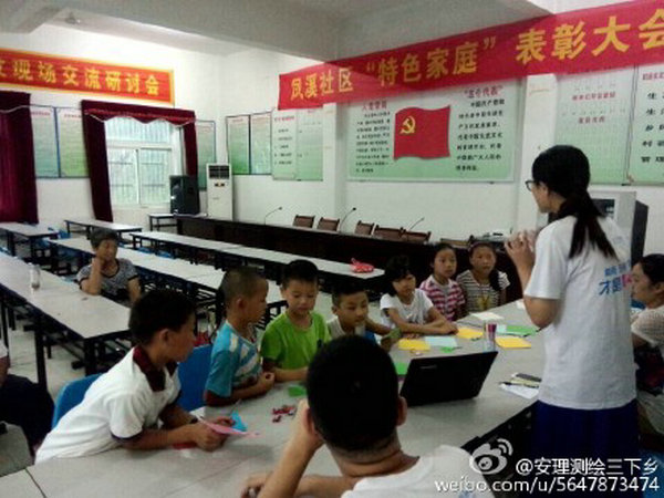 7月14日上午,安徽理工大学测绘学院“关爱留守儿童”实践团队来到安庆市宜秀区罗岭中心学校,对安庆市关爱留守儿童网站“彩虹桥”的创始人龙鹏飞老师进行了访问。