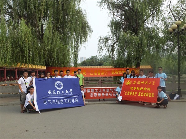 7月11日-15日,电气与信息工程学院暑期社会实践团队分别在宿州、宿松、霍邱和淮南四地开展法制宣传和问卷调查活动。